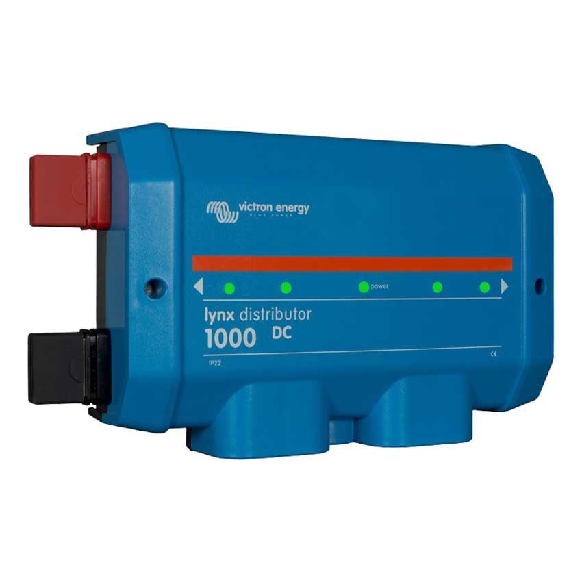A modular DC busbar, with locations for four DC fuses. It will monitor the status of each fuse and indicate LED on the front. Part of the modular Lynx distribution system. A Lynx distribution system usually consists of a single Lynx Shunt VE.Can module or a single Lynx Smart BMS module. The choice between a Lynx Shunt VE.Can or a Lynx Smart BMS depends on what type of batteries are used in the system. The Lynx Smart BMS can only be used with the Victron Energy Lithium Smart Batteries, while the Lynx Shunt VE.Can is suitable for all other batteries. The Lynx Distributor has a power LED and four fuse status indication LEDs. If connected to a Lynx Smart BMS, up to 4 Lynx Distributors can send fuse status information to the Lynx Smart BMS. This feature is not available when connected to a Lynx Shunt VE.Can.The Lynx Distributor is designed to hold MEGA fuses. These need to be purchased separately.