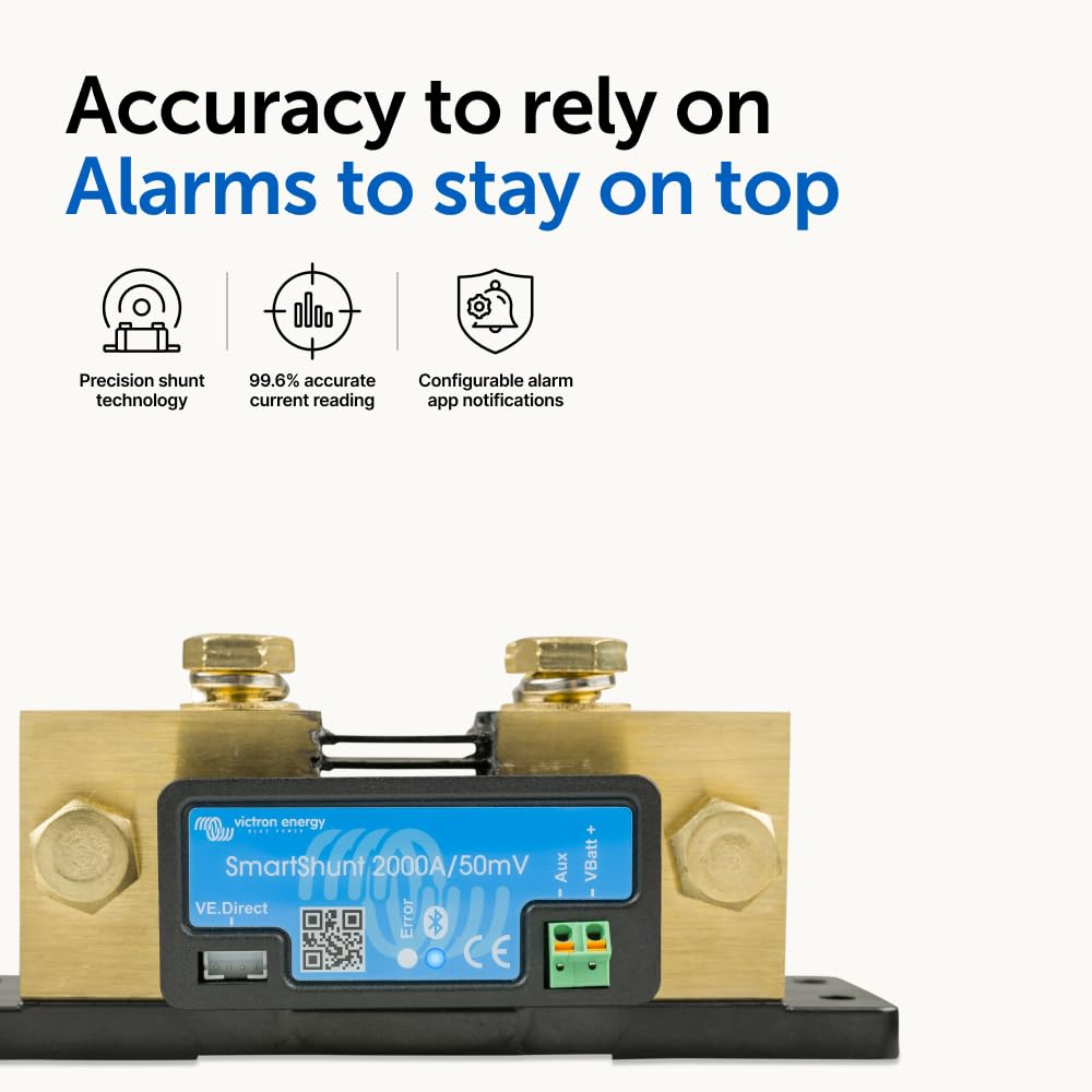 - ALL-IN-ONE SMART BATTERY MONITOR: The Victron SmartShunt is a smart all in one battery monitor that provides detailed battery insights on your phone. It enables smartfunctionalities and optimized charging by wirelessly sharing live battery data with otherdevices in your system. It’s easy to install and (retro)fit into any system.