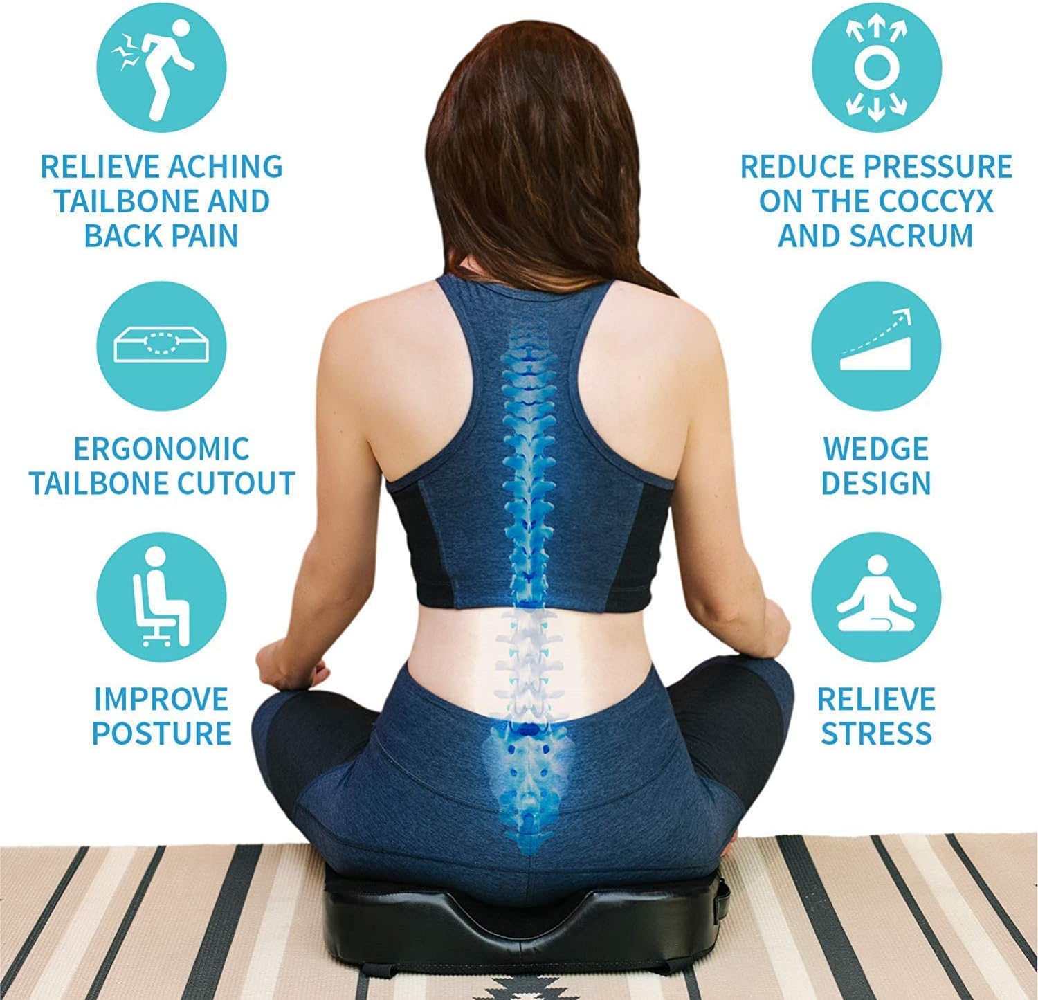 - RELIEVE TAILBONE DISCOMFORT: Crafted perfectly to relieve aching tailbone & back pain by reducing pressure on the coccyx and sacrum with its wedge design and ergonomic tailbone cutout. It can be used to recover from herniated discs, sciatica, tailbone injuries, & other spinal issues