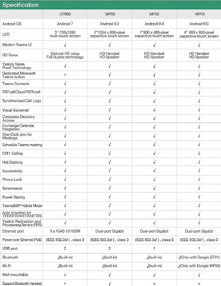 YEALINK MP56 Teams Edition ABS Digital Corded 7" IP Phone, Single Keypad - Black (Like New)