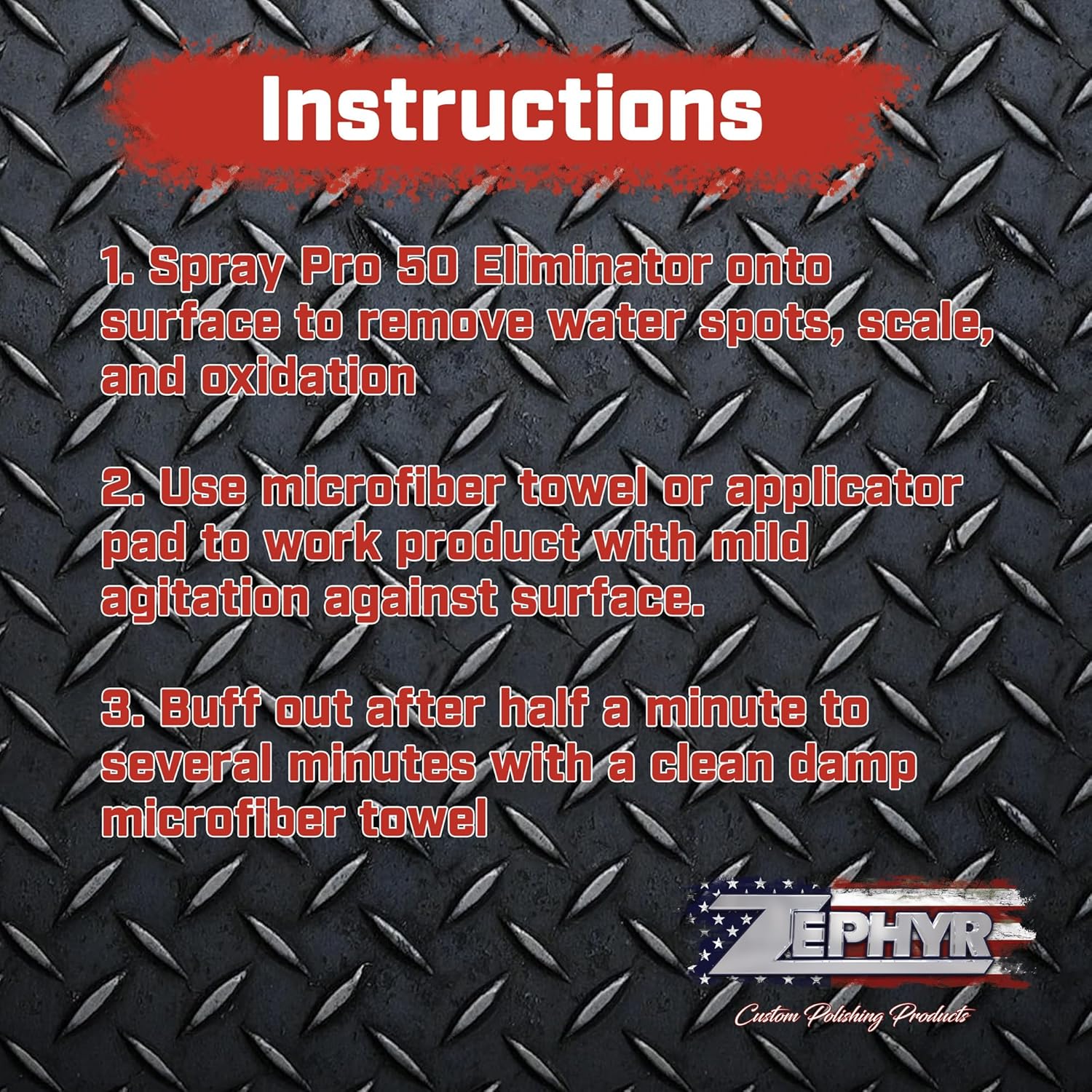 - Pro-50 Eliminator easily removes stubborn water and mineral deposits from Gelcoat, Aluminium, Stainless Steel, Glass, Chrome, and Fibreglass with no scrubbing.